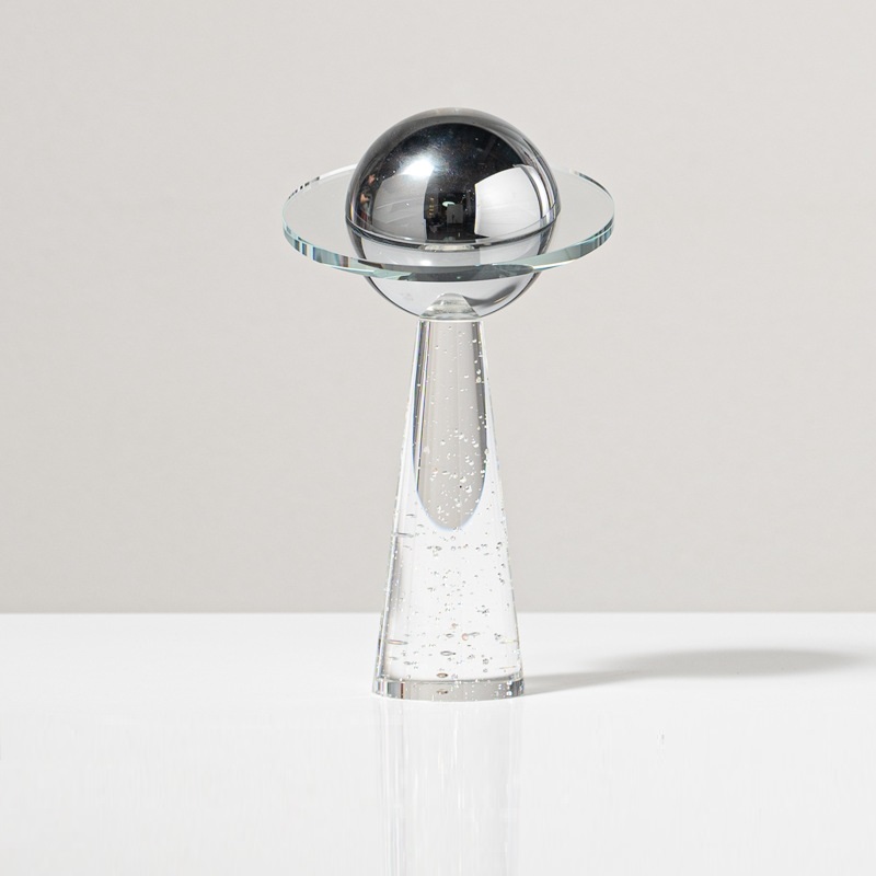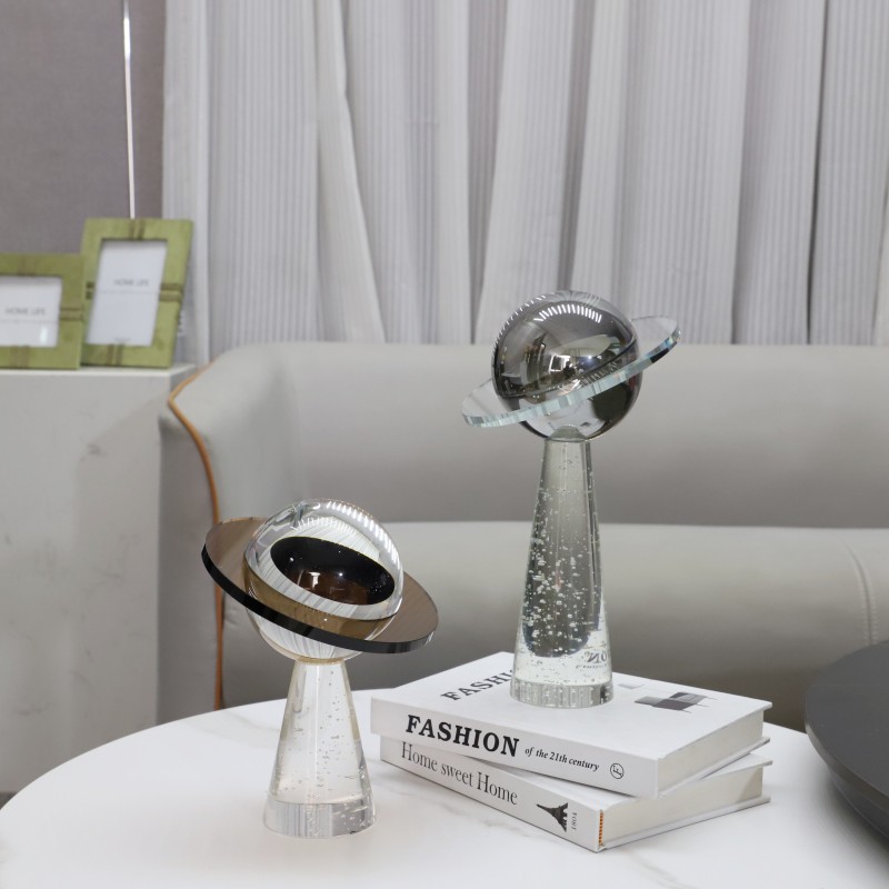 Material : Crystal Glass Color : Clear and Silver Large Size : 15 x 15 x 27 CM.