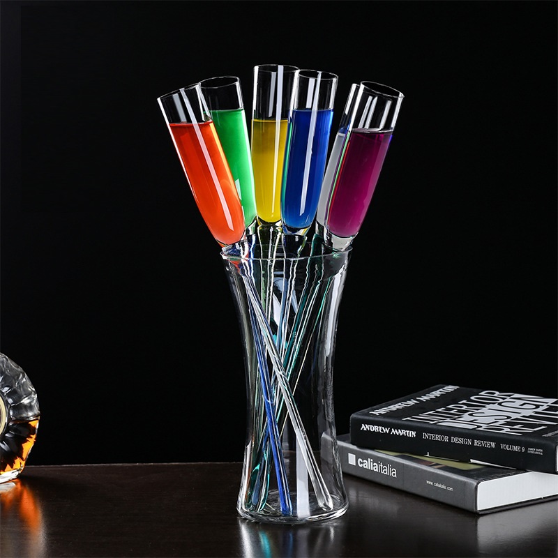 Material :Crystal glass Color : Multi-Color Decanter Size: 12 x 12 x 25 CM. Glass Size: 4 x 4 x 41 CM.