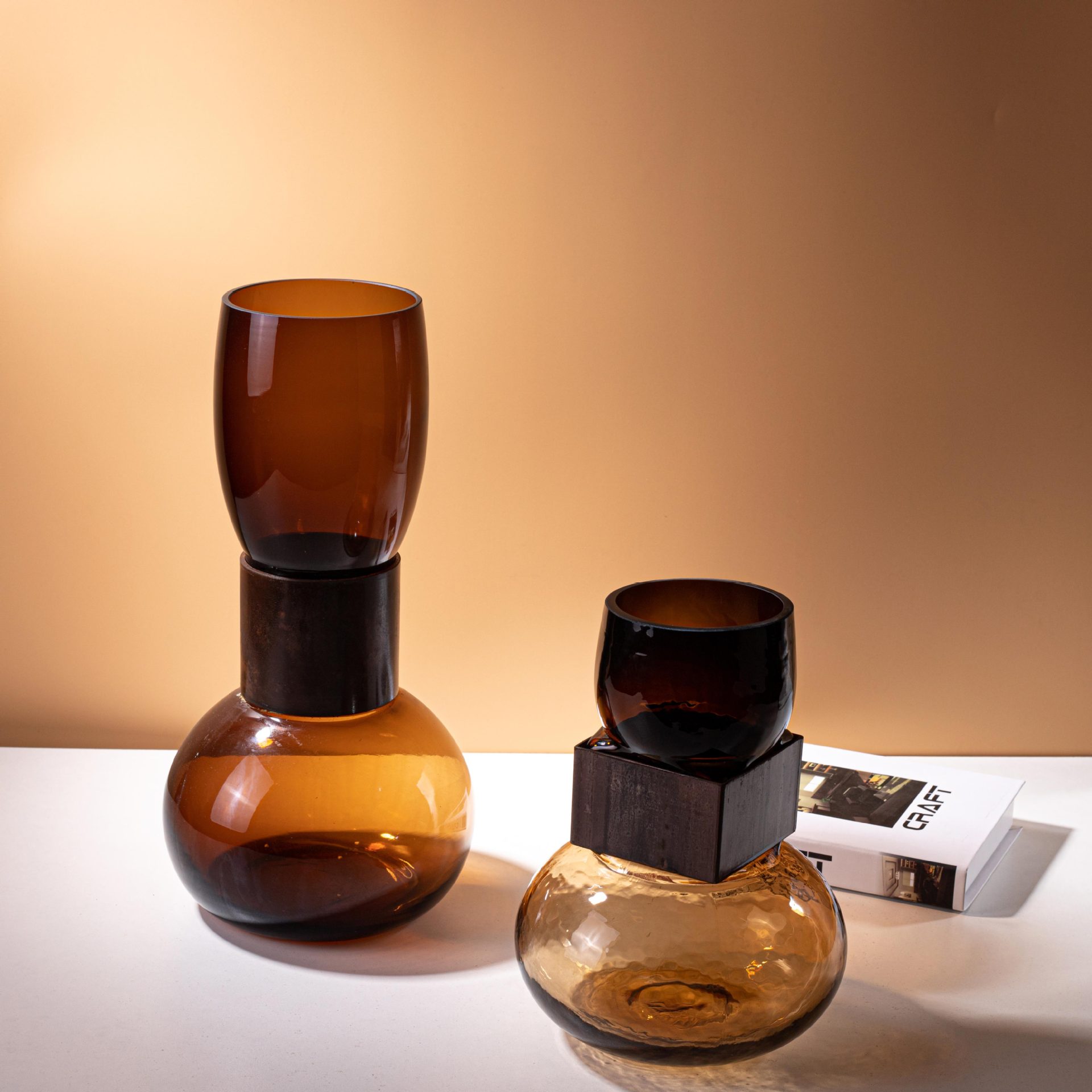 Material : Glass Color : Brown and Black Large Size : 17 x 17 x 40 CM.