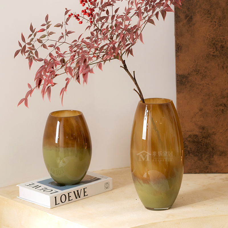 Material : Glass Color : Green and Brown Large Size: 17 x 17 x 34 CM.