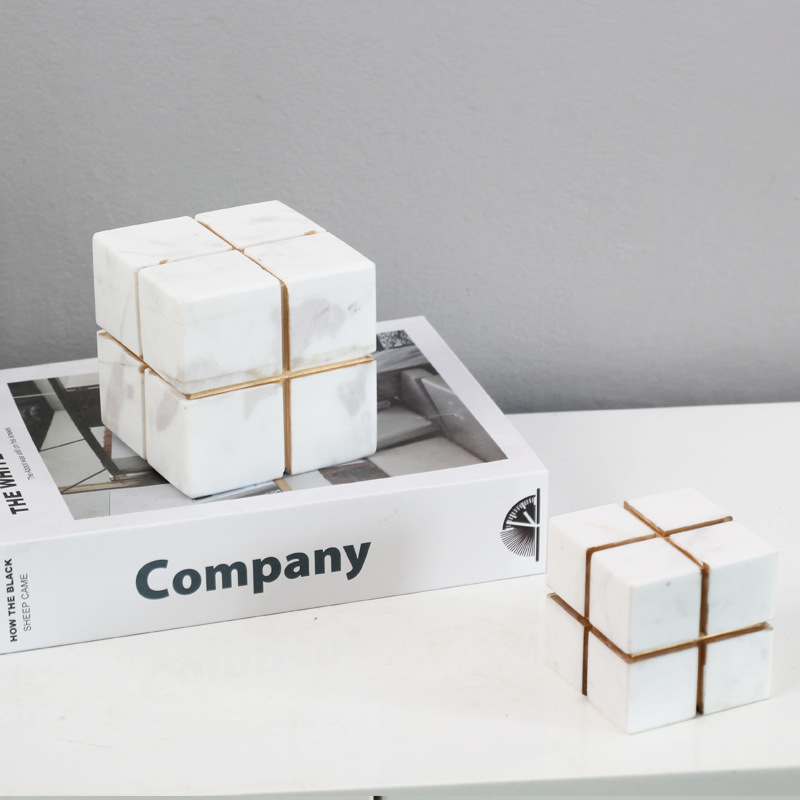 Material : Marble Color : White and Gold Large Size : 8 x 8 x 8 CM.